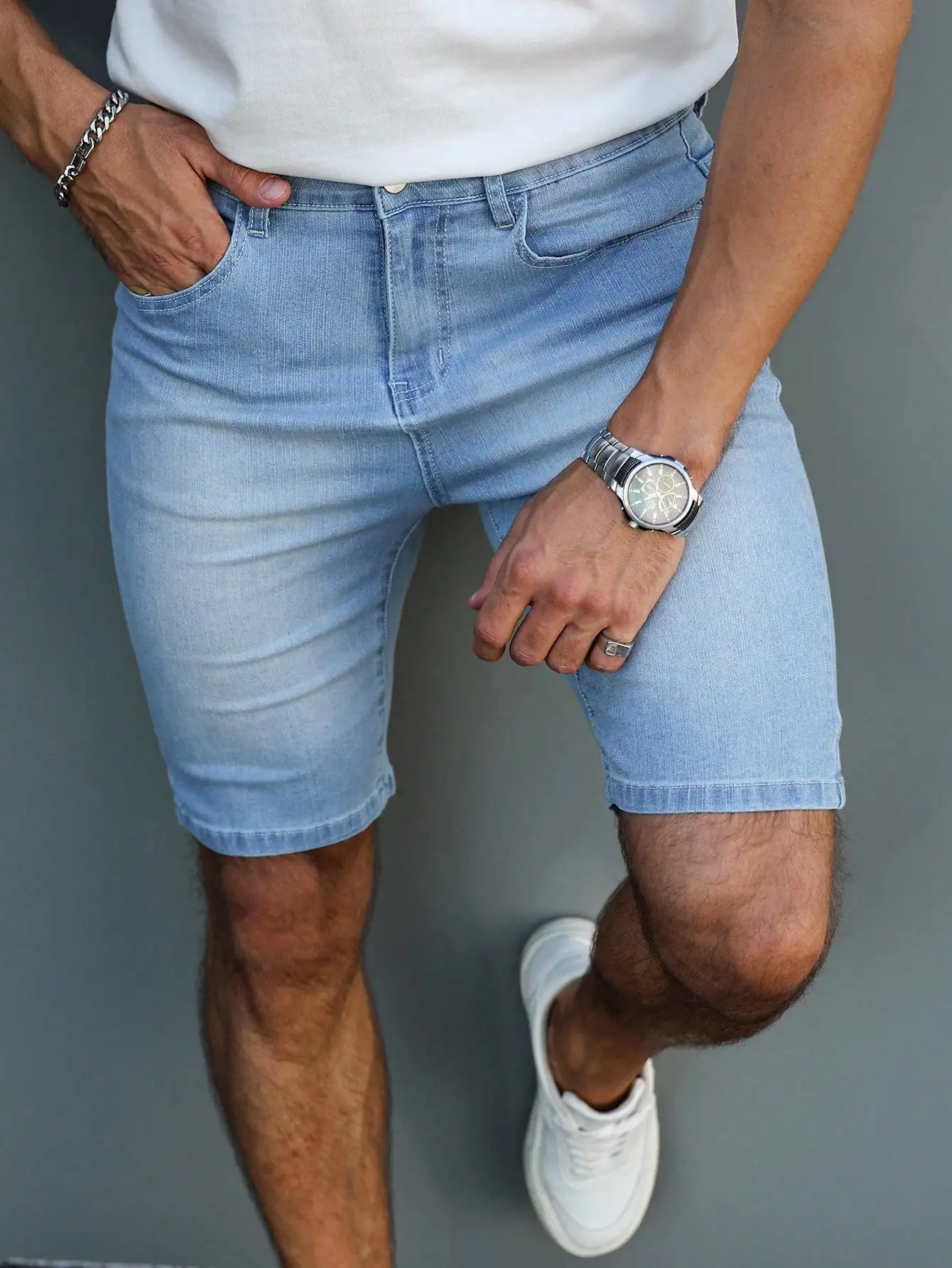 Lavagem azul clara clássica: A cor de base azul suave combinada com uma pedra natural - efeito lavado apresenta um estilo retrô e casual. É versátil e adequado para qualquer ocasião. Feito de tecido mesclado de algodão leve, é macio, agradável à pele e respirável, garantindo que não haja entupimento quando usado no verão. Slim - ajustado, transforme-se instantaneamente em um criador de tendências de estilo de rua.